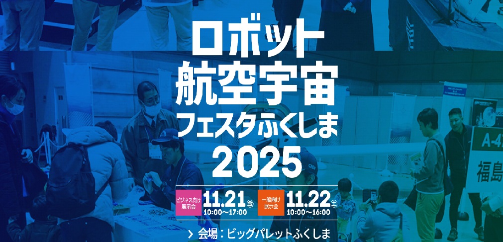 2025年11月21日(金)~22日(土)の2日間、ビッグパレットふくしまで開催される「ロボット・航空宇宙フェスタふくしま2025」 に出展いたします。